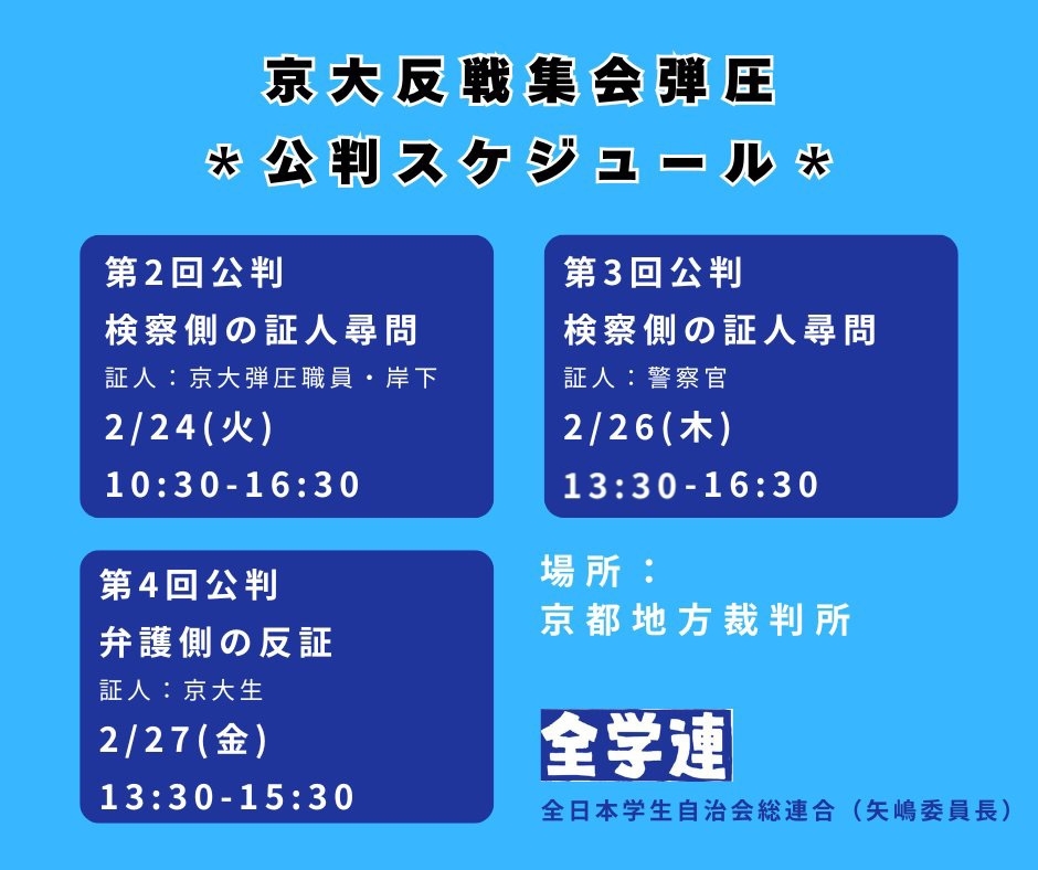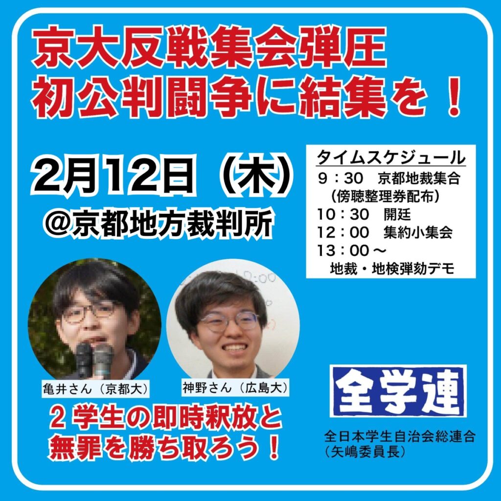 戦争反対を闘う2人の学生が2025年9月3日に不当逮捕されました。容疑は、24 … 続きを読む